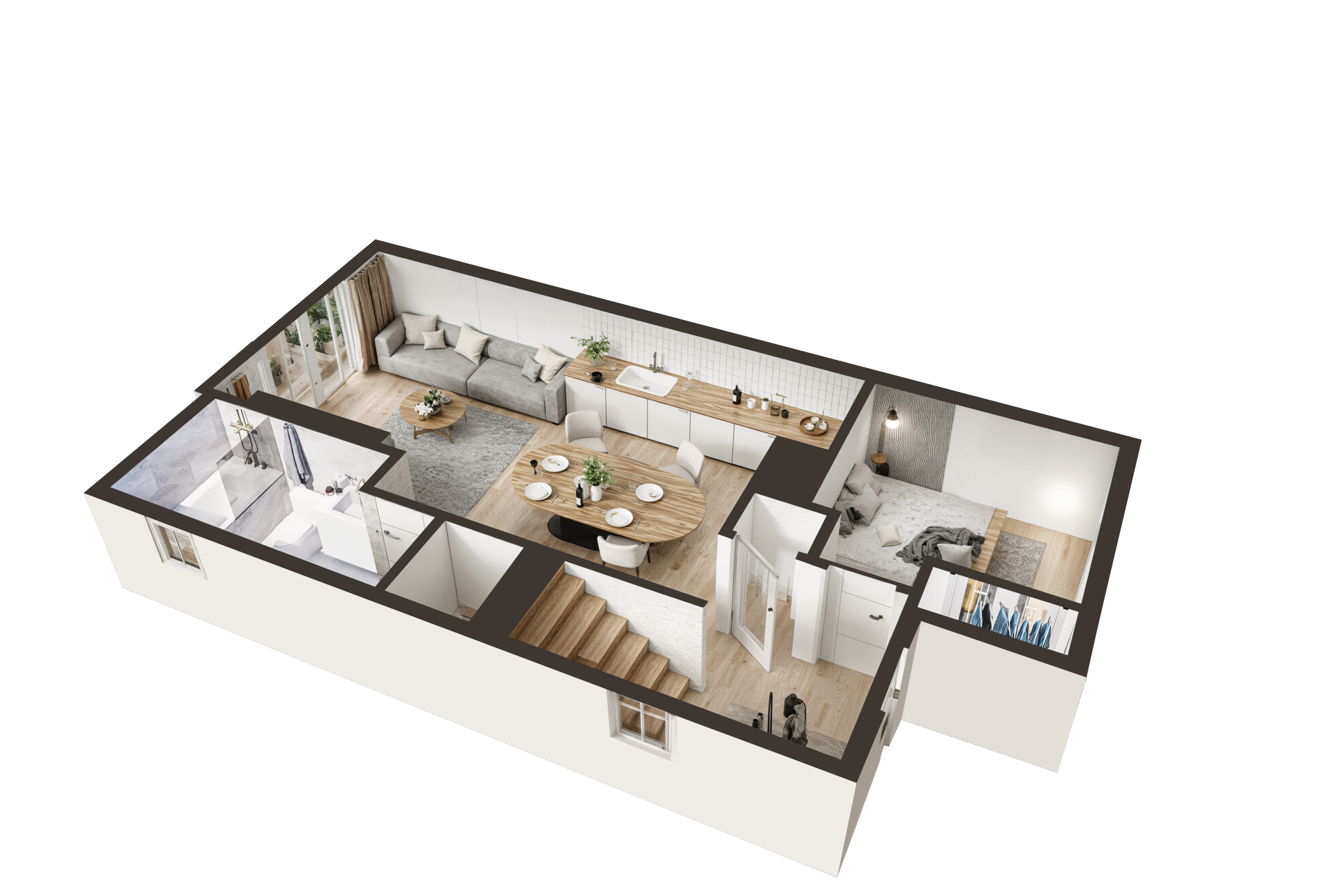 Our goal with these interior renderings was to bring the design concept to life with clarity, realism, and attention to detail—giving viewers an accurate impression of the completed 4-townhome interiors.