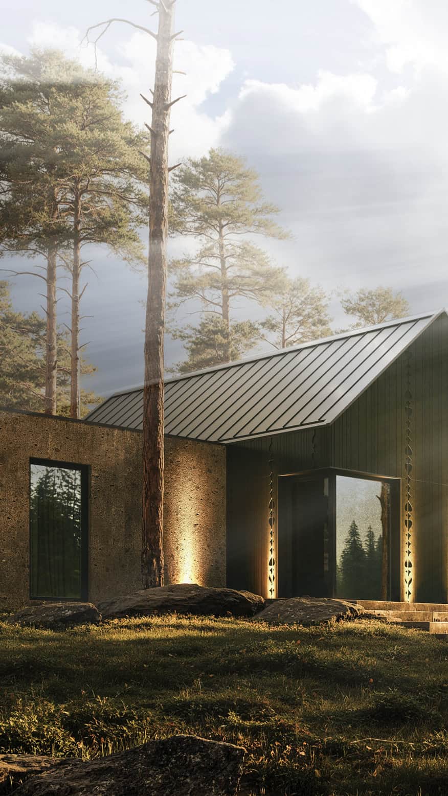 Detailed 3D architectural renderings of a luxurious single-family house located just 5 km outside Dublin, Ireland. This secluded forest home features 6 spacious bedrooms, a grand and elegant living room, 3 modern bathrooms, a gourmet kitchen, and a garage for 4 cars. Nestled in pristine nature, the property is perfect for those seeking privacy and tranquility. The visualizations highlight both interior and exterior details, from natural light-filled spaces to lush surrounding landscapes, making it ideal for architects, developers, and potential homeowners looking for inspiration in forest-located luxury residences